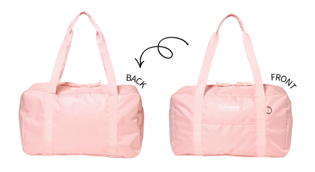 ボストンバッグの前面には「coleman」のロゴと大きなポケット付き。