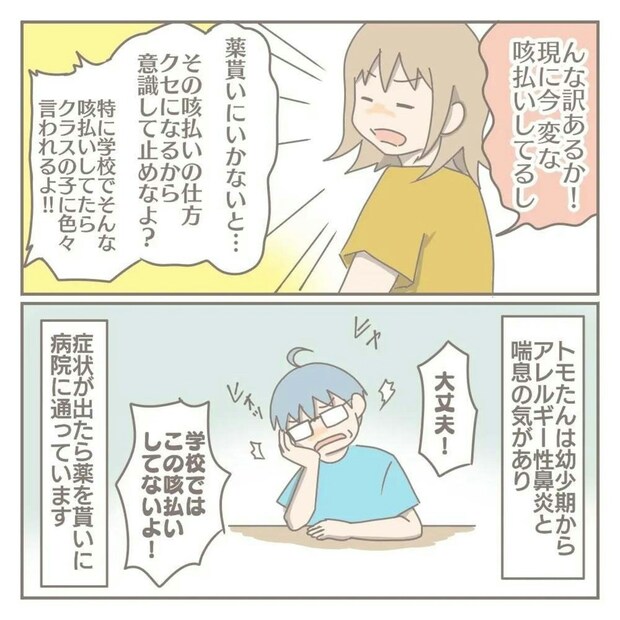 癖にならないように注意をしますが、咳払いは治りません。もともと、鼻炎や喘息があるのでその症状だとヨカさんは思っています。