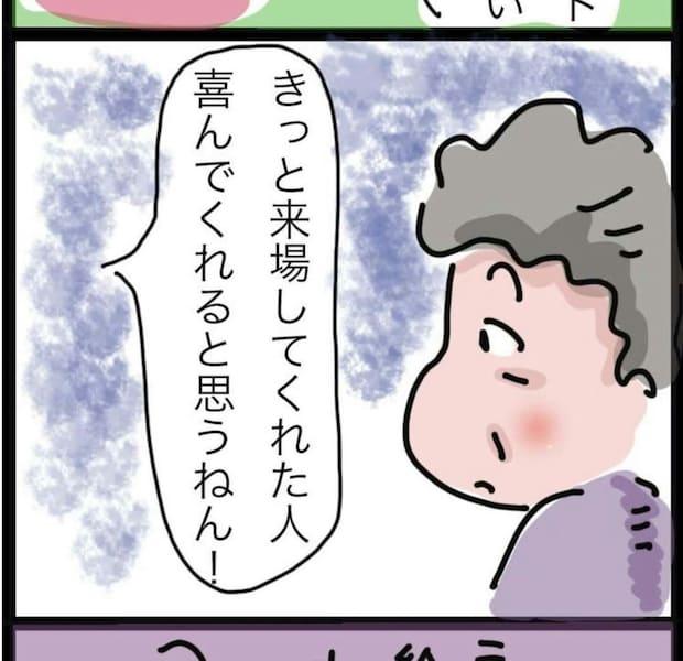 母親は自分の日本画をおかんさんの作品展に出すことに、少し恥ずかしさを感じています。