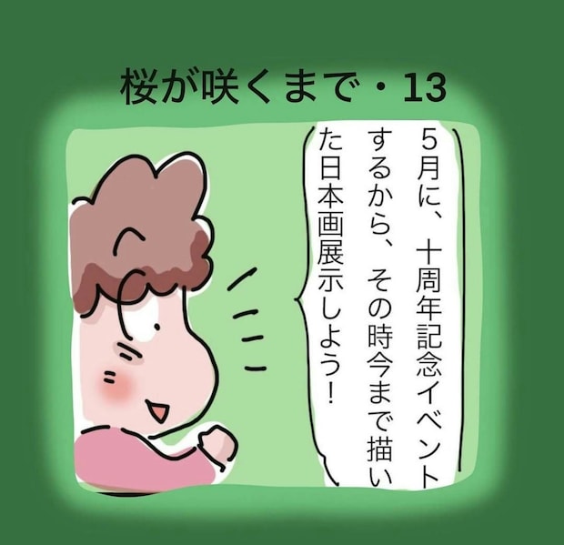 おかんさんは、自身の10周年記念イベントを開催する予定です。そのイベントでは、これまで母親が描いてきた日本画の作品を展示することに決めました。