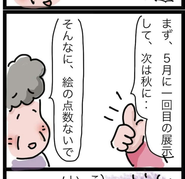 おかんさんは、母親が描いた日本画も自分の作品展で一緒に展示しようと提案しました。母親もその話に前向きでしたが、病状が悪化したため、残念ながら実現しませんでした。