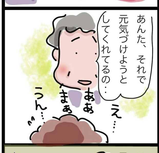 母親はおかんさんが自分を元気づけようとしてくれていることに気づいています。