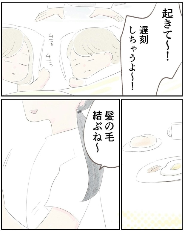 朝、ゆうさんが寝ている娘たちを起こす声がします。その風景の中に「離婚届」が。
