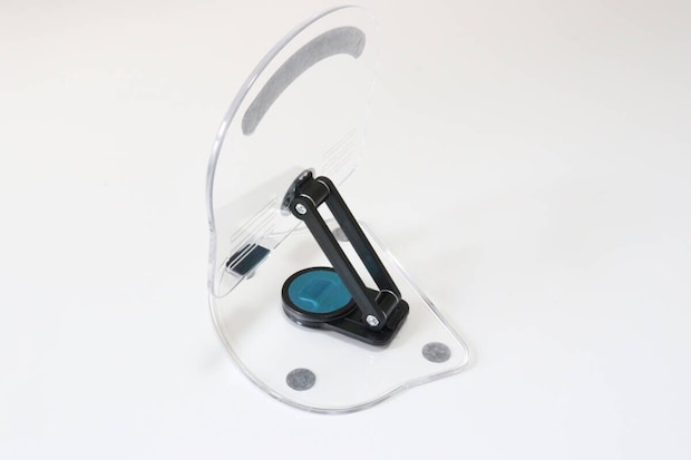 クリア素材を組み合わせたスタイリッシュな外観は、デスクに置くだけで一気に今どきな雰囲気に。13インチまでのタブレットやスマホに対応しており、耐荷重は1kgまでとタフな設計です。使わない時はコンパクトに折り畳めるので、カフェやコワーキングスペースなど出先での作業にも気軽に持ち運べます。
