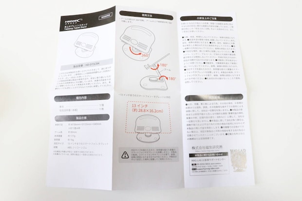 サイズ(約):折り畳み時W156mmD×123mm×H43mm/アーム長80mm