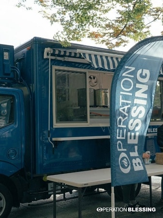 オペレーション・ブレッシング・ジャパンの「災害対応型炊き出し」は、平時からフードトラックによる炊き出し支援を行い、災害発生時にも、同じ場所・同じ運営方法・同じスタッフ体制で支援を継続できる仕組みをつくることを目的としている。