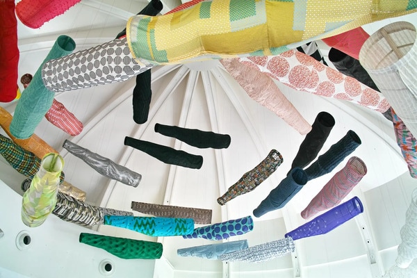 『こいのぼりなう!』は、鮮やかな色彩のテキスタイルによる「こいのぼり」が大空間を埋め尽くし、躍動感あふれるランドスケープを生み出すインスタレーション作品。
