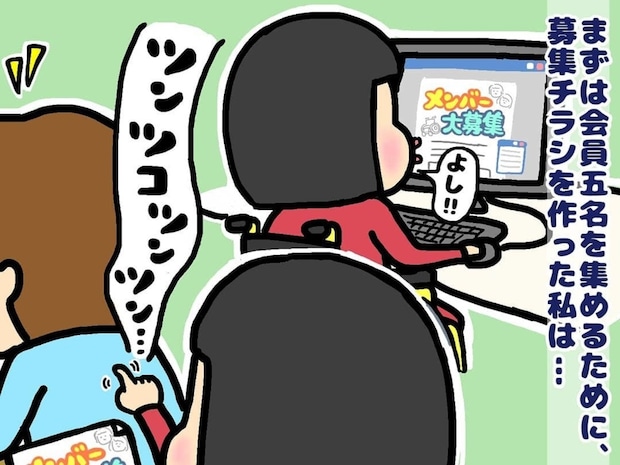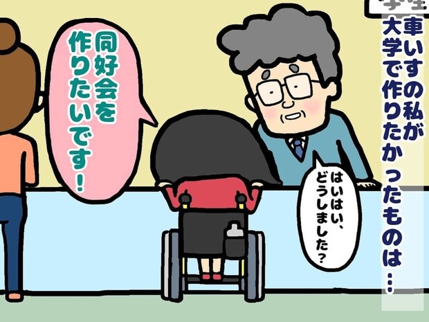 周囲の助けなしでは大学生活を送ることが難しかった主人公。しかし、学内には障がいのある学生を支援する仕組みがありませんでした。そこで「ないなら自分で作ろう!」と決意し、支援サークルの設立に向けて動き始めます。