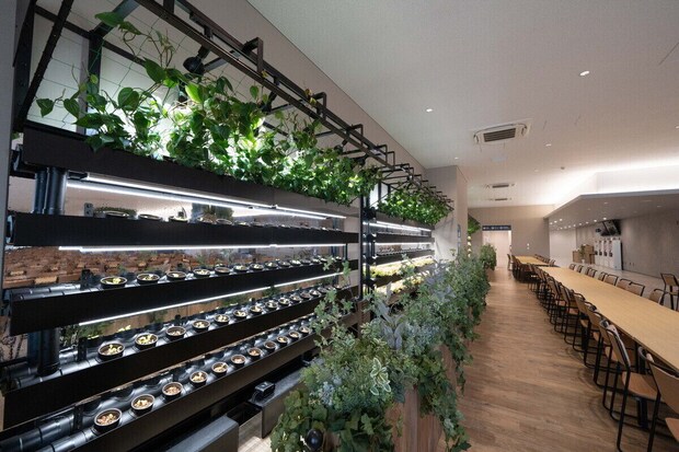 明るく開放的な空間では、働く方々の健康を考えてサニーレタスが育てられていました。