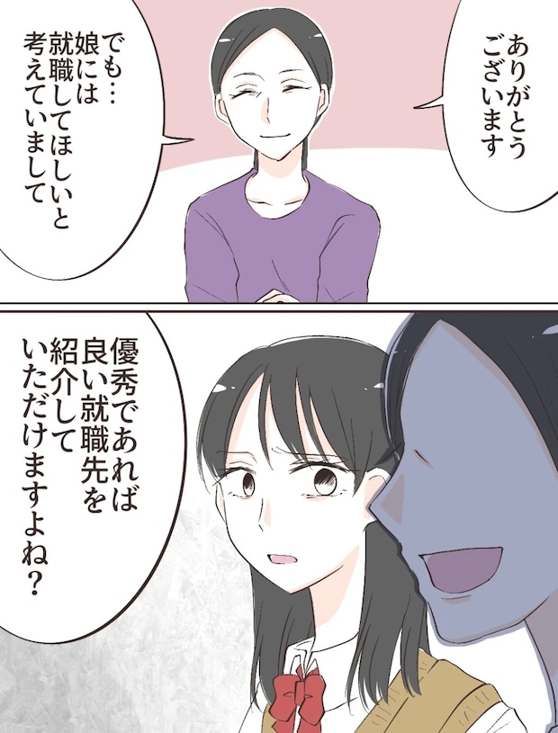 しかし、母は「ありがとうございます、でも娘には就職してほしいと考えていまして・・・優秀であれば良い就職先を紹介していただけますよね?」と言いました。勉強が好きだった私は、叶うことなら大学に進学したいと思っています。けれど、高校以上にお金のかかる大学への進学を母が許すはずありません。