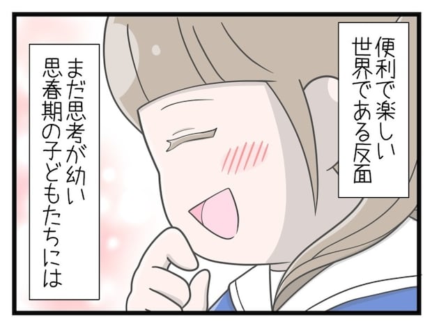 最悪の状況を避けるためにも、日頃から家族でSNSの使い方について話し合い、ルールを共有しておくことが大切です。SNSは手軽で楽しい一方で、一度トラブルに巻き込まれると心に深い傷が残ってしまうこともあります。この物語は、そんな“便利さと危うさ”の両面を改めて考えさせてくれる作品です。