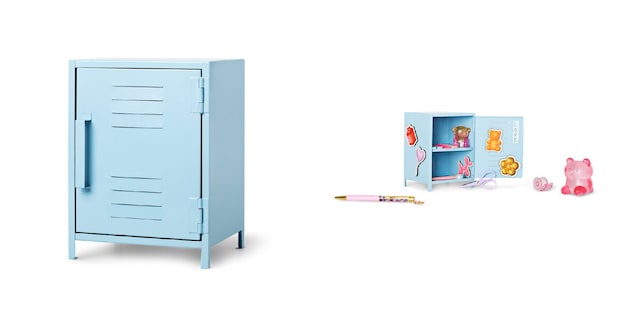 高さ27cmと、ぬいぐるみなどにぴったりのサイズ! 推し関連の小物を入れたり、ロッカーにシールを貼ってデコったりすることができます。普通に小物の収納として使用してもOK。ちゃんと鍵も付いています。