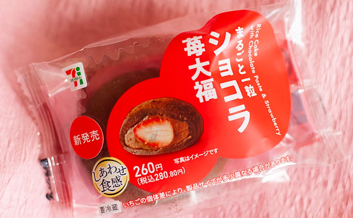 簡単に言えば丸ごと一粒の苺が入った大福なのですが、“ショコラ”と付いているとおり、濃厚なチョコあんも一緒に包まれているのだとか。セブン-イレブンが最近推している「しあわせ食感」も気になりますね。