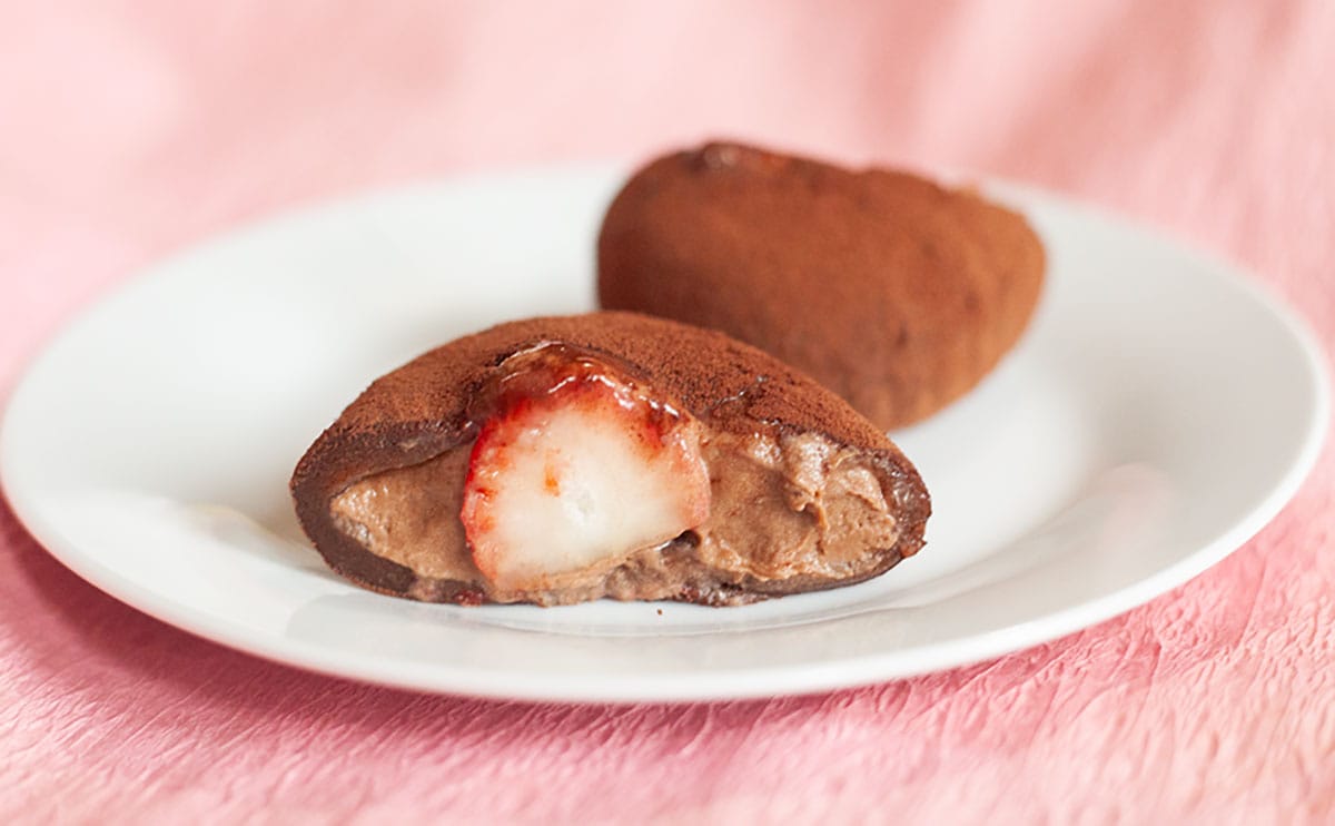 苺大福は今やおなじみのスイーツになったけれど、チョコ味って、意外と出会わないかも。チョコ好きの人、苺好きの人、そして大福好きの人。多くの方が満足できる一品だと思いますので、今日のおやつ候補にぜひ入れてみて。