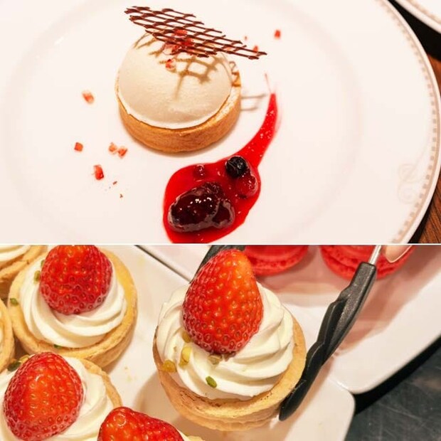 数あるいちごスイーツの中で、私のおすすめは「いちごタルト(写真下)」。ひと口サイズでビジュアルも満点! サクッとしたタルトの中には、カスタードとクリームがきれいな層になっていて、上にのったフレッシュいちごのみずみずしさが際立ちます。甘さと酸味のバランスが完璧で、満足度の高いスイーツです。