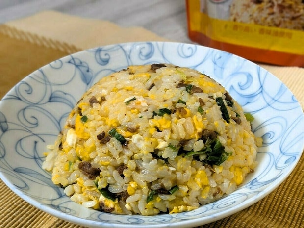 作り方は、この素を炒めてから溶き卵とご飯を加え、3分ほど炒めるだけと非常に手軽です。