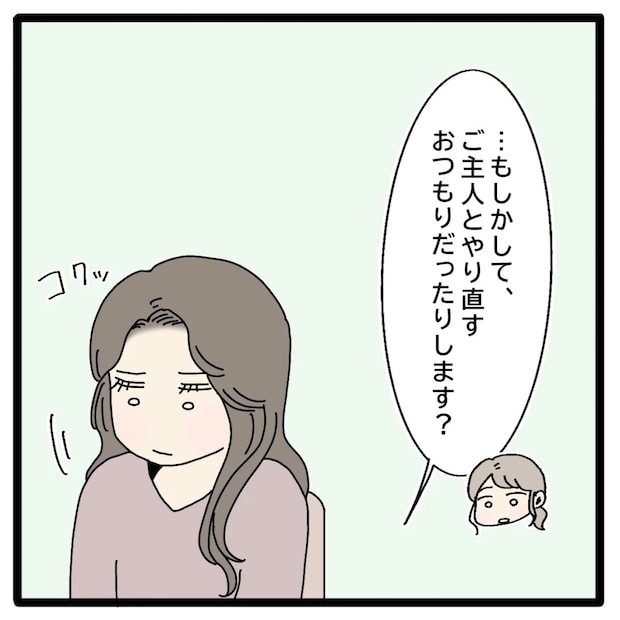 旦那さんと離婚していないってことは、もしかして・・・。そう思った私は「ご主人とやり直すおつもりだったりします?」そっと問いかけました。すると聡子さんは何も言わず、ただ静かに、こくりと頷いたのです。