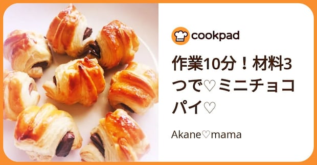市販のパイ生地に、カットした板チョコをはさんでオーブンへ。サクサクした生地と、トローリチョコのコラボがたまりません。おいしすぎて、何個でも食べられる~。