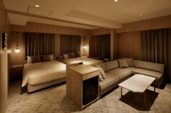 HOTEL THE LEBEN OSAKAは「都市を遊ぶには、ゆとりがいる。」をコンセプトに、日本の平均的な宿泊特化型ホテルの広さ15~20㎡に対し全室30㎡以上、バス・トイレ別のセパレート仕様を採用し、快適で落ち着いた滞在空間を提供している。さらに、ホテルでも自宅のようにくつろげるよう、リビングと寝室の境界を意識し、仕切りを設けた客室が一部用意されている。