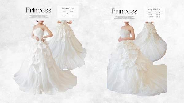 いずれも前撮り撮影を前提に、シルエットの見え方や素材感を重視してセレクトされている。