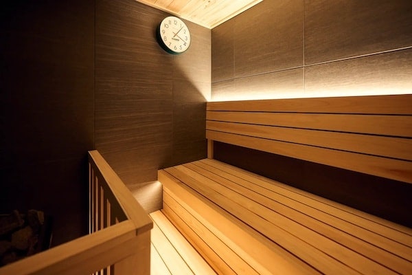 3階は「青ゐ空のスパ」。空を仰ぎ、光と風とともに心身を解き放つ、浄化のためのフロアだ。設備は、本格サウナ、水風呂、屋外ジャグジー、スパエリア、寝室。