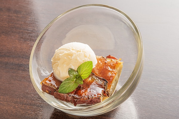 溶け出すバニラアイスを絡めることで、「温×冷」の甘みがとろけ合う。