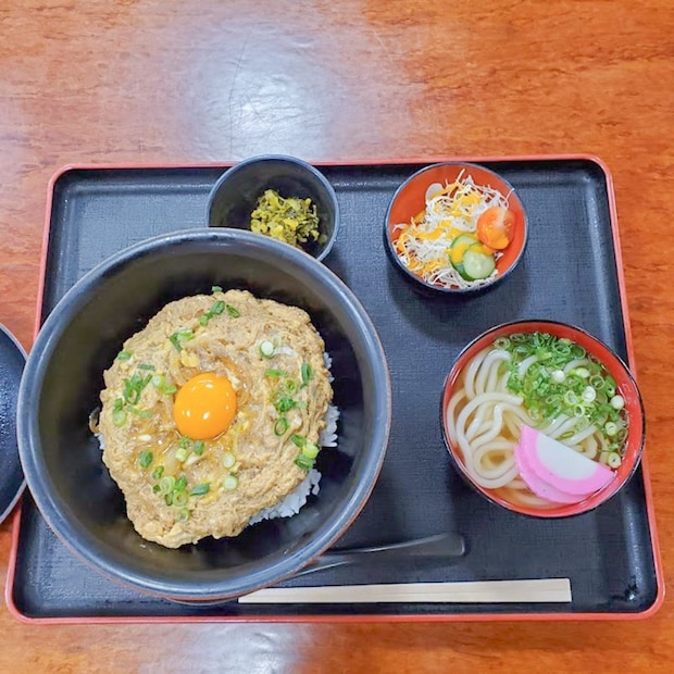 お店の歴史に思いをはせていると、お出汁のいい香りとともにまずは玉子丼とミニうどんのセットが席に到着しました。