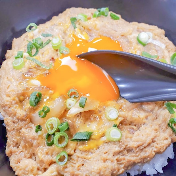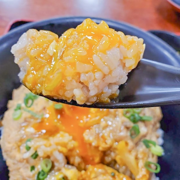 ふんわりと絶妙の火加減でとじられた卵の上に、さらに生卵がトッピングされているという、まさに卵好きにはたまらない贅沢なビジュアルに圧倒されるはずです。
