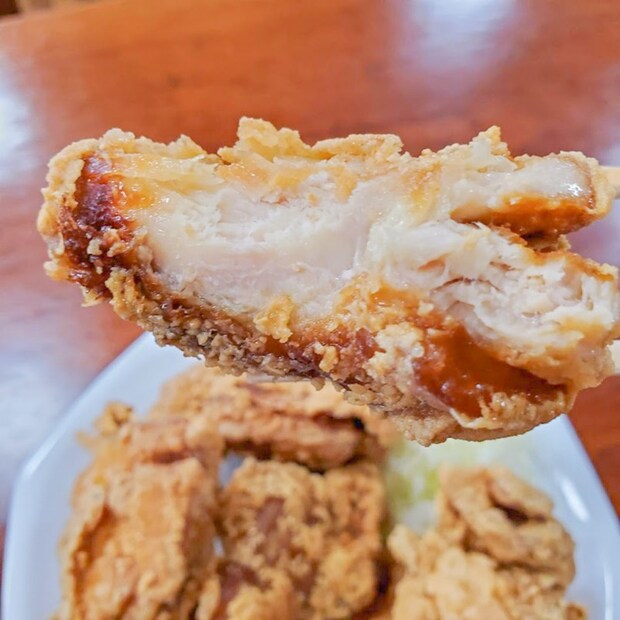 この時点で少し欲張り過ぎたかと後悔しかけた唐揚げですが、思い切ってかぶりつくと思っていた以上に衣が軽やかで脂っこさを感じません。