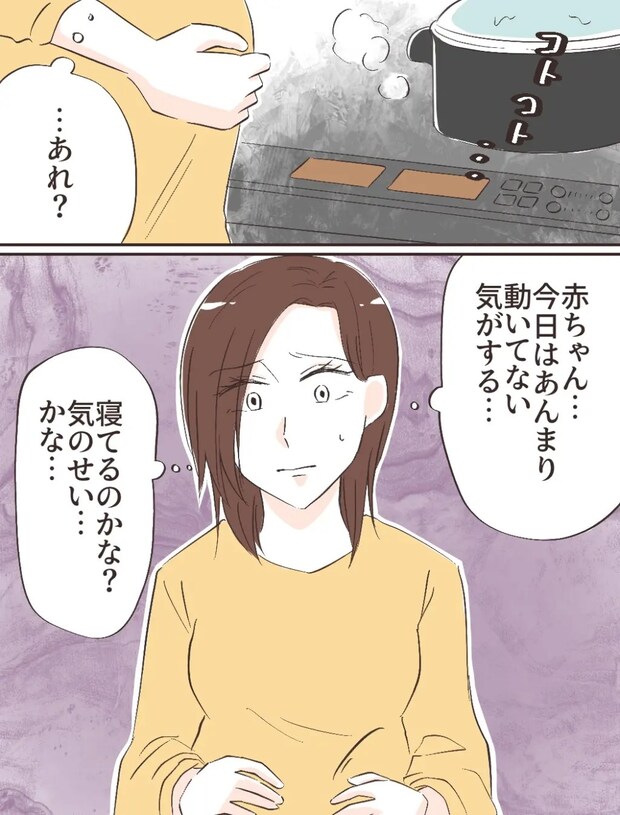 「赤ちゃん・・今日はあんまり動いてない気がする・・寝てるのかな?気のせい・・かな・・」と不安な気持ちになりました。