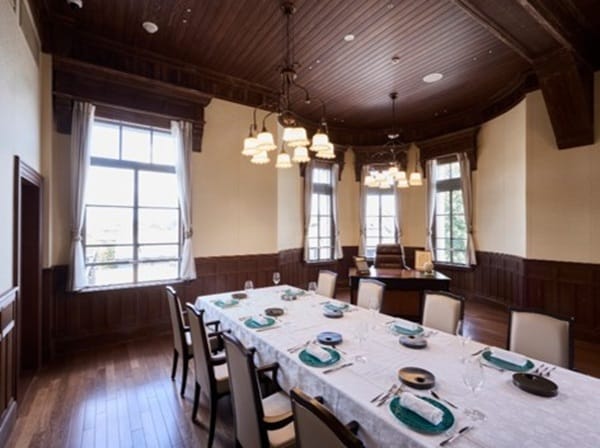旧頭取室は、ほぼ開業当時の貴賓室の雰囲気を再現した重厚な内装で、個室として利用できる。