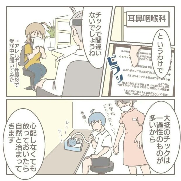 チック症が出て、医師に聞いたところ、ヨカさんは正しくない対応だったと反省します。そして、それほどまでにストレスなのに、登校を続ける様子を何とかしてあげたいと、改めて思います。ヨカさんはスクールカウンセラーさんに相談をしてみようかと迷うのでした。