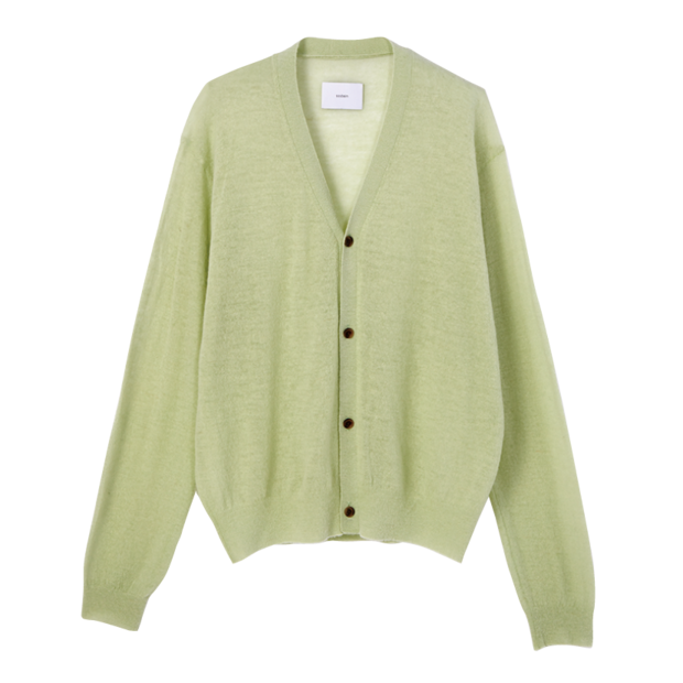 美しいグリーンはコーデのポイントに。カーディガン¥40,700(シュタイン/エンケル)