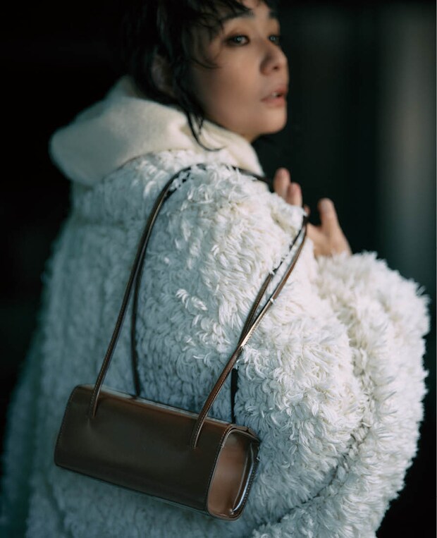 フランスの食パン(パン・ド・ミ)のようなフォルムの「ミ」。バッグ¥126,500(フェイン/アダム エ ロペ)、コート¥279,400(ハルノブムラタ/ザ・ウォール ショールーム)、フーディ¥75,900(モダネス/ゴウドウガイシャインデザイン)
