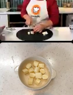 2.さつまいもを加熱している間に、中に入れるチーズ(さけるチーズなどお好みで)を12等分にカットしておきます。