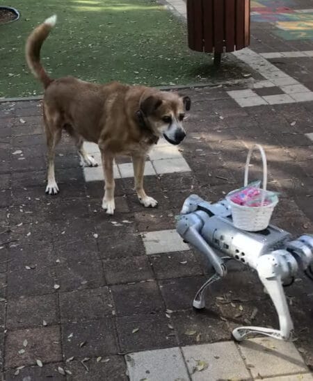 本物の犬さんに、ロボ犬を対面させてみると、
