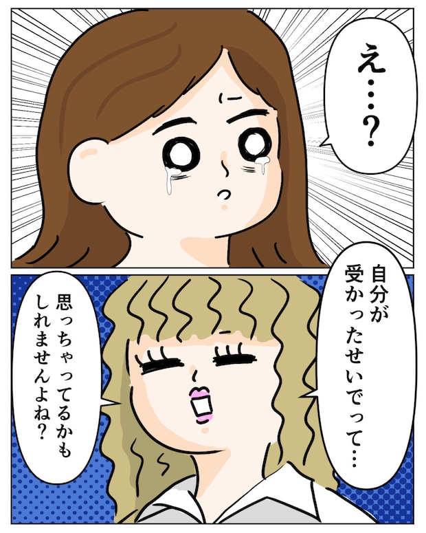 その言葉を聞いて「え・・?」と驚いた私に、「自分が受かったせいでって・・思っちゃってるかもしれませんよね?」と冷静に話すりえちゃん。