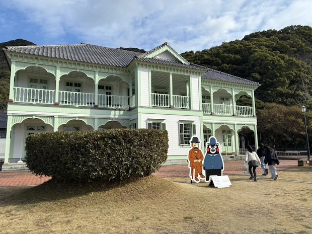 三角西港を設計した技師ムルドルに扮した「くまモン」像もみなさんのお越しをお待ちしていますよ!