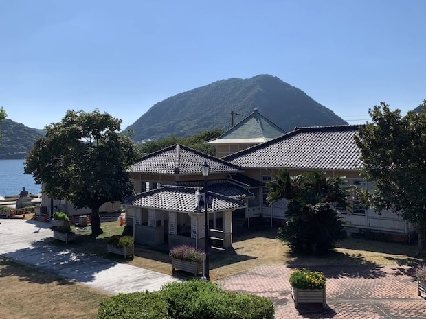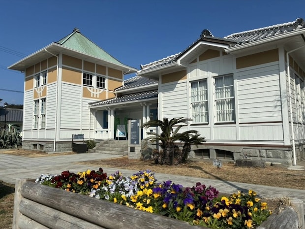 その横にはコロニアル様式のホテル、「浦島屋」。残念ながら現在の建物は設計図をもとに復元されたものですが、現在放送中の朝ドラ『ばけばけ』の小泉八雲(ラフカディオ・ハーン)がそのおもてなしを気に入って、紀行文『夏の日の夢』の中で紹介しています。