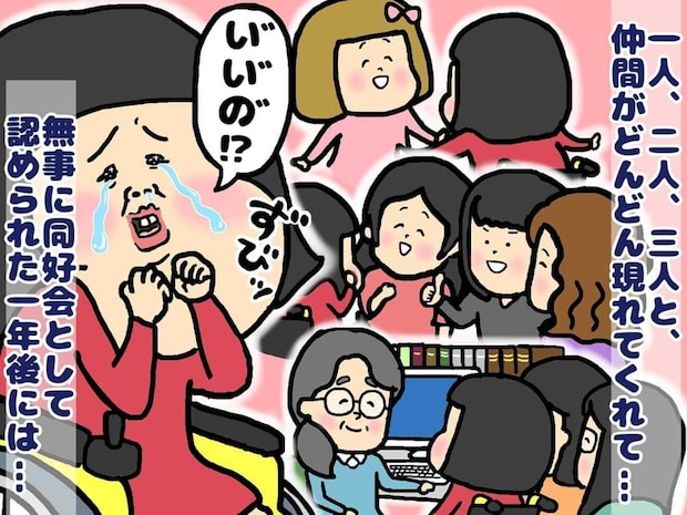 主人公の不安をよそに、想いに共感してくれる仲間が次々と集まり、ついに支援サークルを発足させることができました。