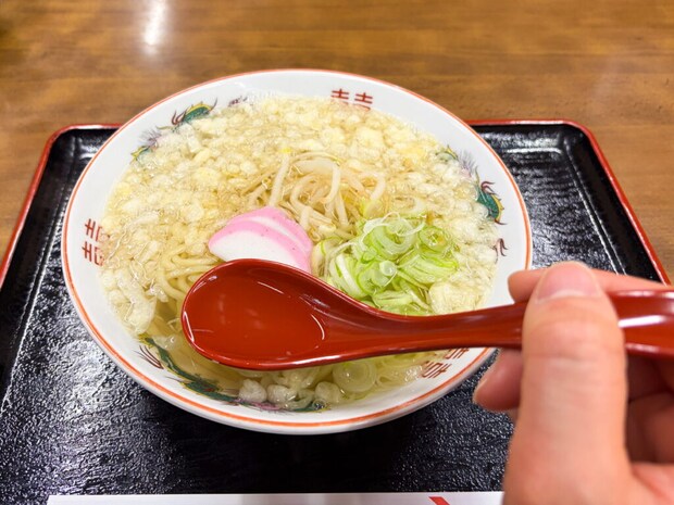 通常のサイズが550円なので現代でも他のラーメンより安いですね!!具材はとてもシンプルでもやし・ねぎ・かまぼこ・揚げ玉です。具材は昔から変わりませんが、最近はトッピングでひと味違った素ラーメンを楽しんでもらえるように工夫しているそうです。