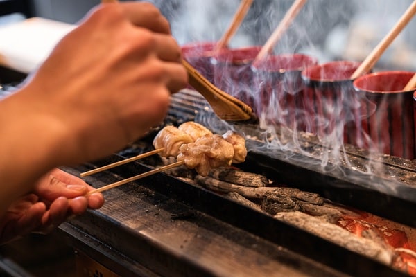 力強い香りと奥行きを与える「薪」、それぞれの熱源の特性を部位ごとに使い分けることで、他では味わえない立体的な焼き鳥体験を実現している。