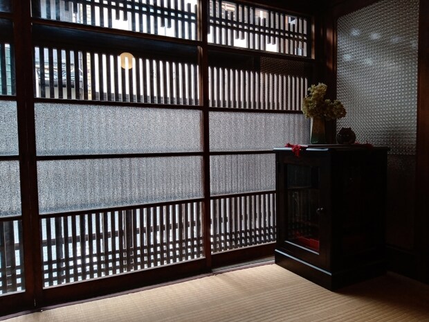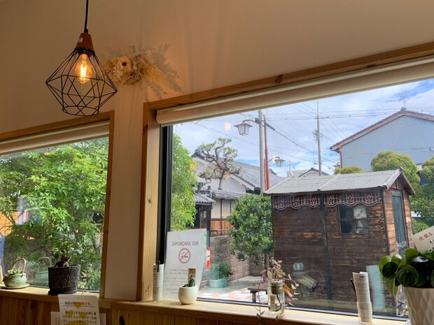店内はカウンター席と窓に面したテーブル席があります。窓からは古い民家も見え、心が落ち着きます。御所まち散策の休憩などに、利用してみてはいかがでしょうか。
