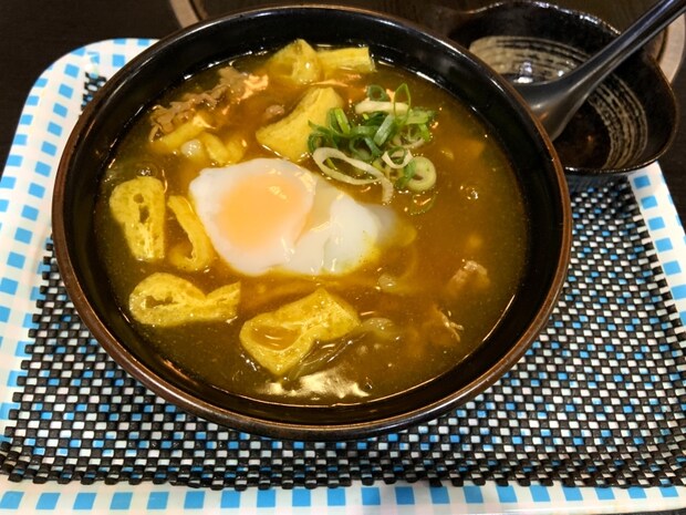 筆者もこちらで温玉カレーうどん(700円)をいただいてみました。カレーのつゆは、甘さはほとんどなく、出汁がきいた和風タイプです。麺は柔らかめで、スパイスの効いたつゆとよく絡み、美味しくいただけました。