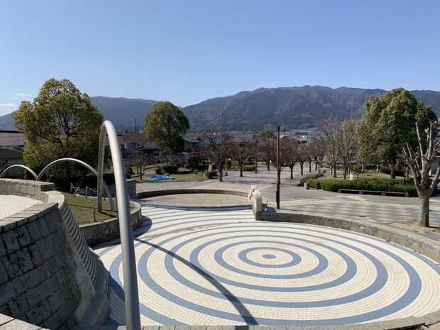 御所まちの北東、御所市内を南北に流れる葛城川沿いにある公園です。広い芝生広場や噴水、遊具などがあり、市民の憩いの場になっています。