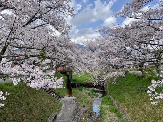 お花見の穴場的なスポットで、お弁当や軽食を川のベンチで食べたりする人の姿もみかけます。川沿いを歩き、ゆっくりとお花見を楽しんでみてください。