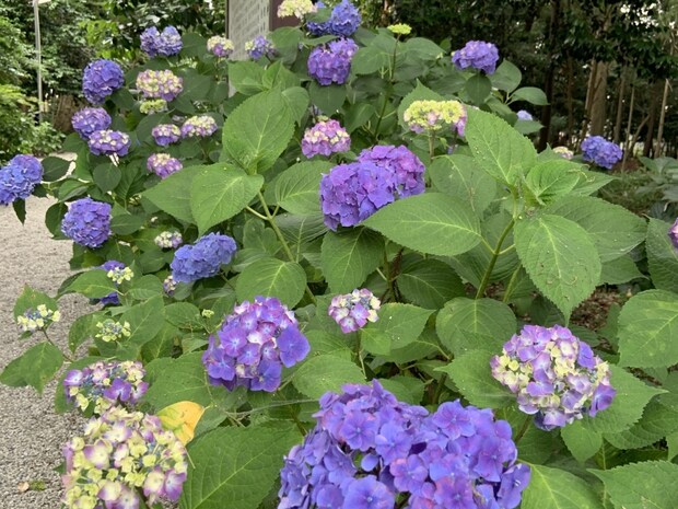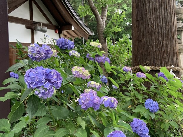 初夏には境内にアジサイの花が咲くことでも知られています。紫や青といった涼しげな色の花が多く、参拝者も比較的少ないので、ゆっくりと観賞できるでしょう。