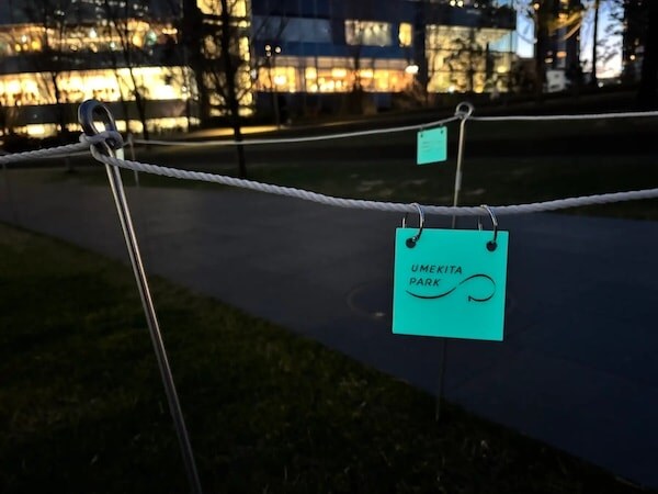 「ナイトコンシェルジュ」を設置した「humorous」は、「うめきた公園」の事例を、都市の中心で自然・安全・体験価値が共存する空間づくりの先行事例として位置づけている。