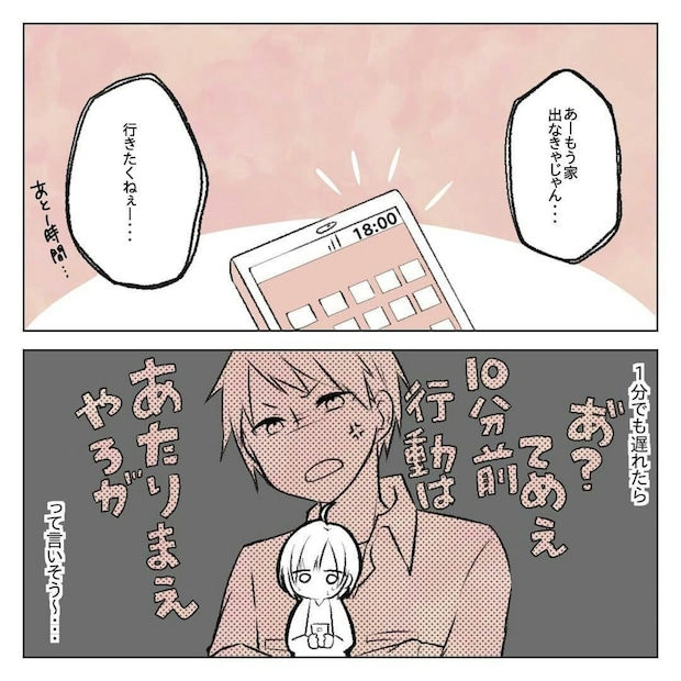 当日になっても飲み会に行きたくないと思っていたりんさん。しかし、ゆーさんに小言を言われるのを回避するため急いで出かけていきます。