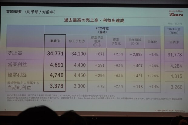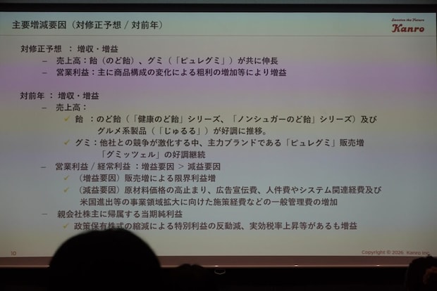 2月13日(金)、カンロ飴やピュレグミ、ASMRで話題の「グミッツェル」などでおなじみのカンロ株式会社が、2025年度決算・2026年度経営方針説明会を都内で実施しました。売上高・利益ともに過去最高を達成。カテゴリトップメーカーとして、市場での存在感を示した結果となりました。
